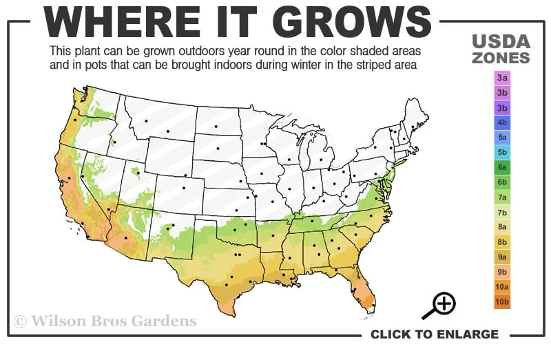 USDA Plant Hardiness Zones:Â 7a to 10a (6?)Â Â Find Your Zone